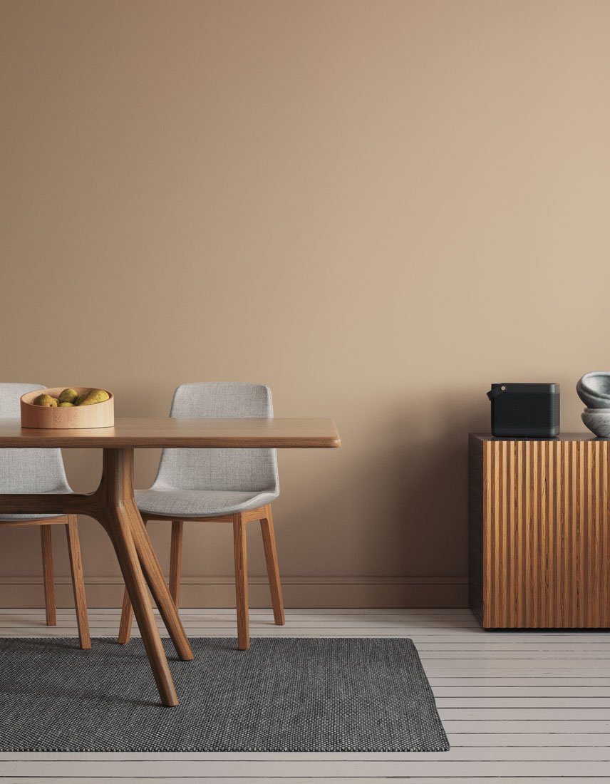 Move over to beige's dark side with Beige 02, in a tasteful matt finish perfect for toning things down. Hints of buff brown bring an effortless boldness, while the grey undertones and matt finish make it a surefire winner in a north-facing room.