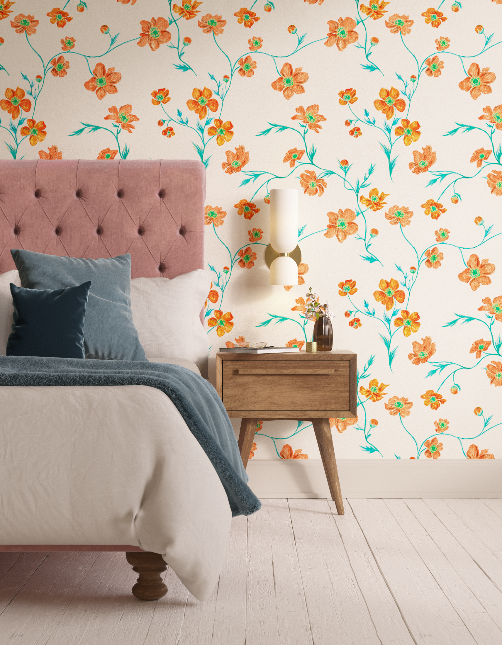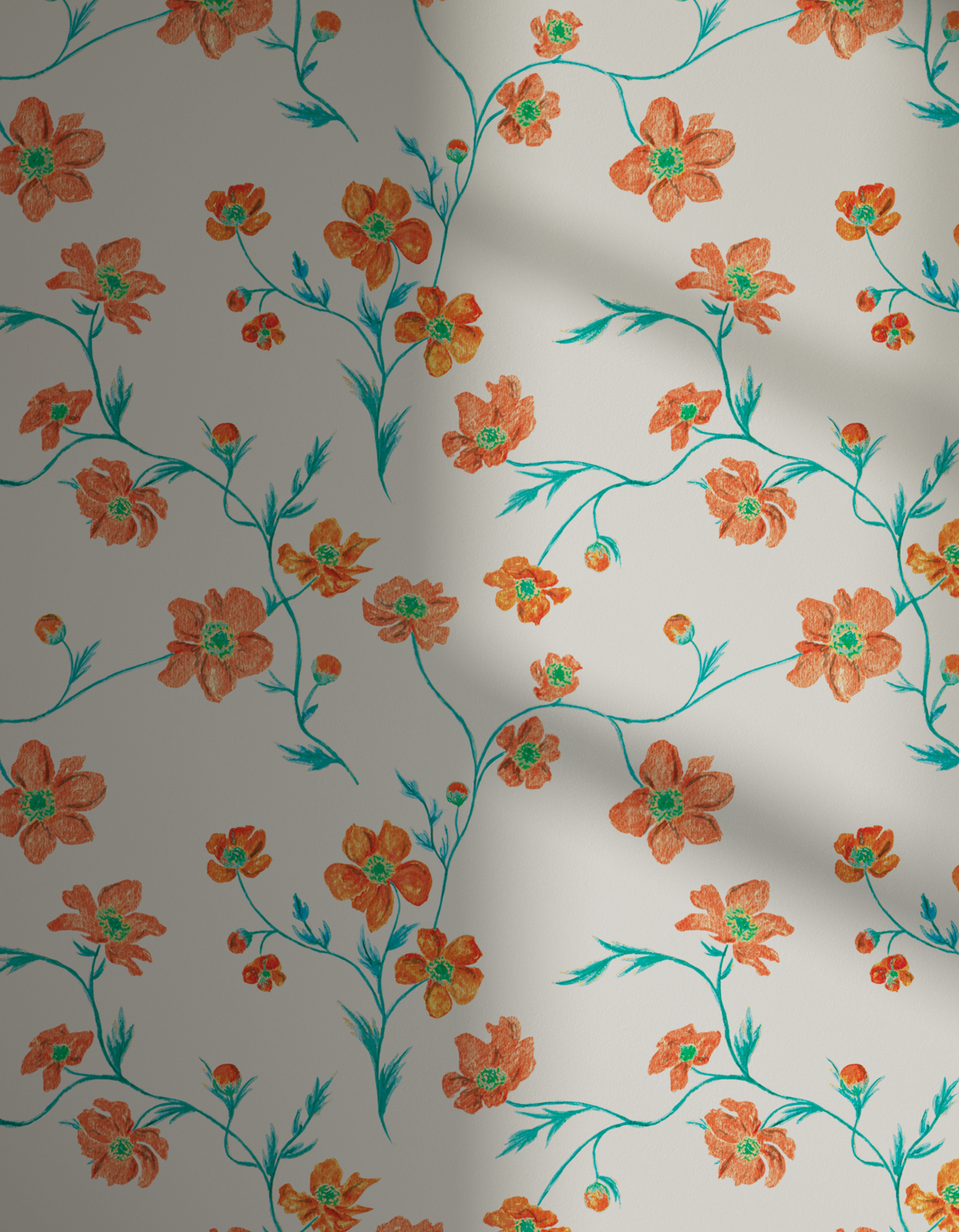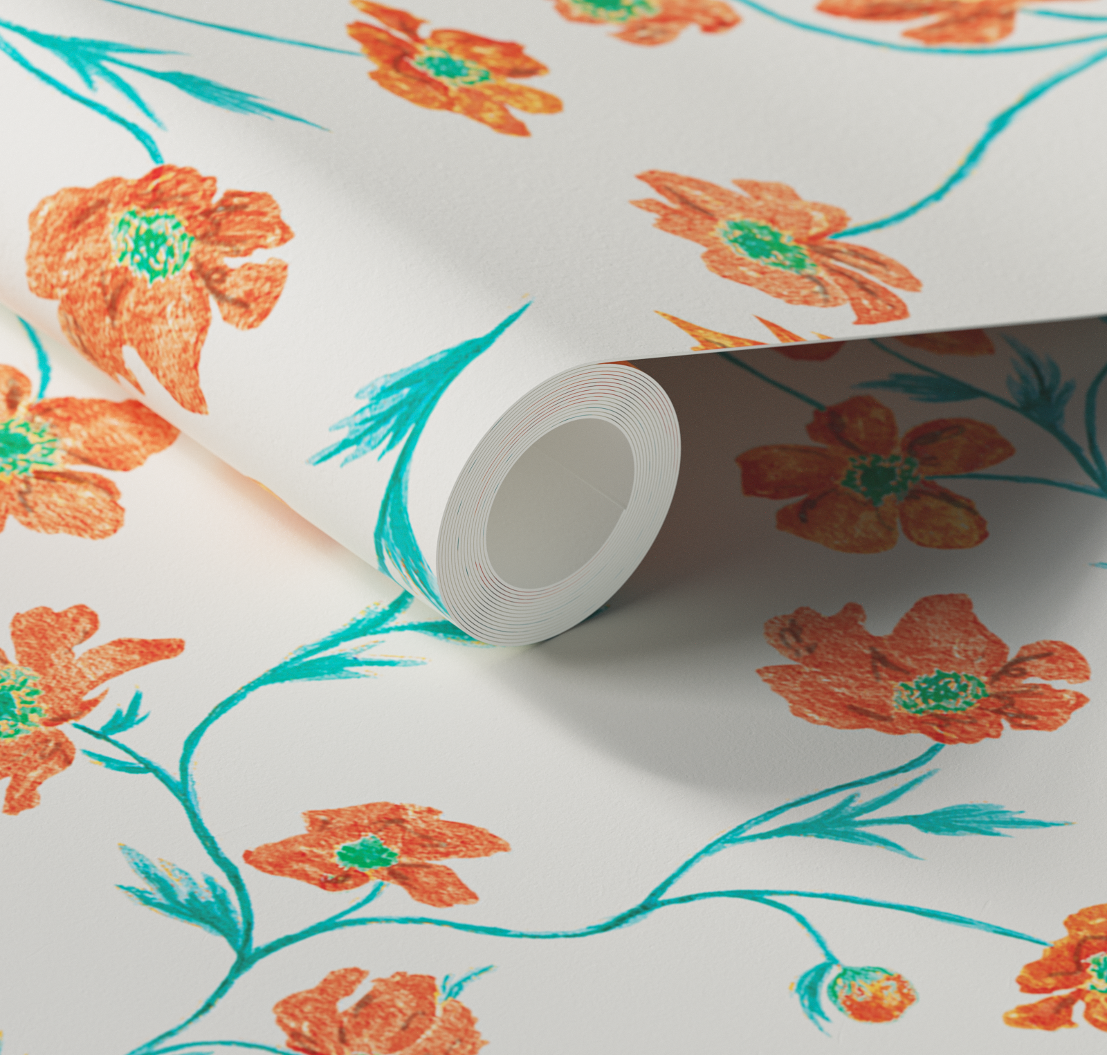 Dainty blooms yes, but the depth of colour in artist Jenna Hewitt's ember rich anemone petals won't get lost in a room. White 03 complements the creamy white backdrop or paper your whole room – this is a print that'll never overwhelm. This wallpaper is part of our festive collection, a gift from the Lick team to you. Happy Holidays!